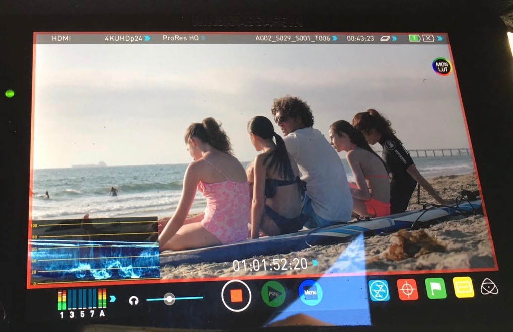 Pretty Outrageous The Movie 2016, the Girl Band on camera with our very cool Surf Instructor, Josh Margulies!